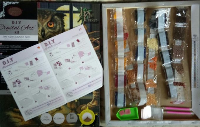 The design comes on a 40x50cm canvas and the entire design is lettered to match the colorful crystals just like you would paint by numbers, but using crystals. The canvas is adhesive and using the pen provided, you pick up the crystals and place them on the canvas. At the end of your hard work is an amazing wall canvas. A fun and relaxing way to spend time.