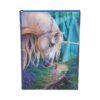 From the magical mind of fantasy artist Lisa Parker, comes this enchanting Fairy Whispers Journal, perfect for keeping all your secrets safe. On the surface of the forest floor, two magical creatures emerge and reach out to one another. A tiny fairy stands atop a fallen tree branch as it reaches upwards, greeting an adult Unicorn which cranes downward, just close enough so that the Fairy can touch the Unicorn’s nose. The Fairy wears a tattered lavender dress with her translucent wings reflecting the moon’s light as it filters through the treeline above. As the Unicorn cranes downward its long, untamed mane follows. Behind the mystical creatures is a lush bluebell wood during twilight, completing the magical scene. Inside the journal, high-quality plain paper gives you the freedom to record your magic and dreams unimpeded.