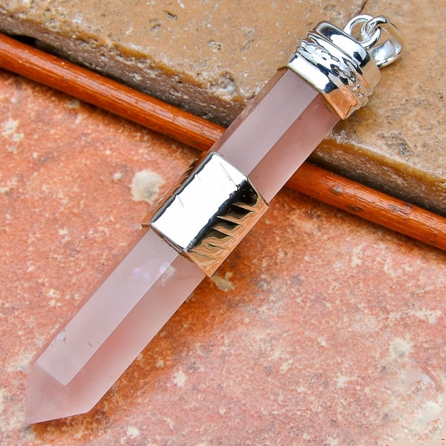 ROSE QUARTZ TERMINATED POINT STERLING SILVER PENDANT 3″ (76mm)